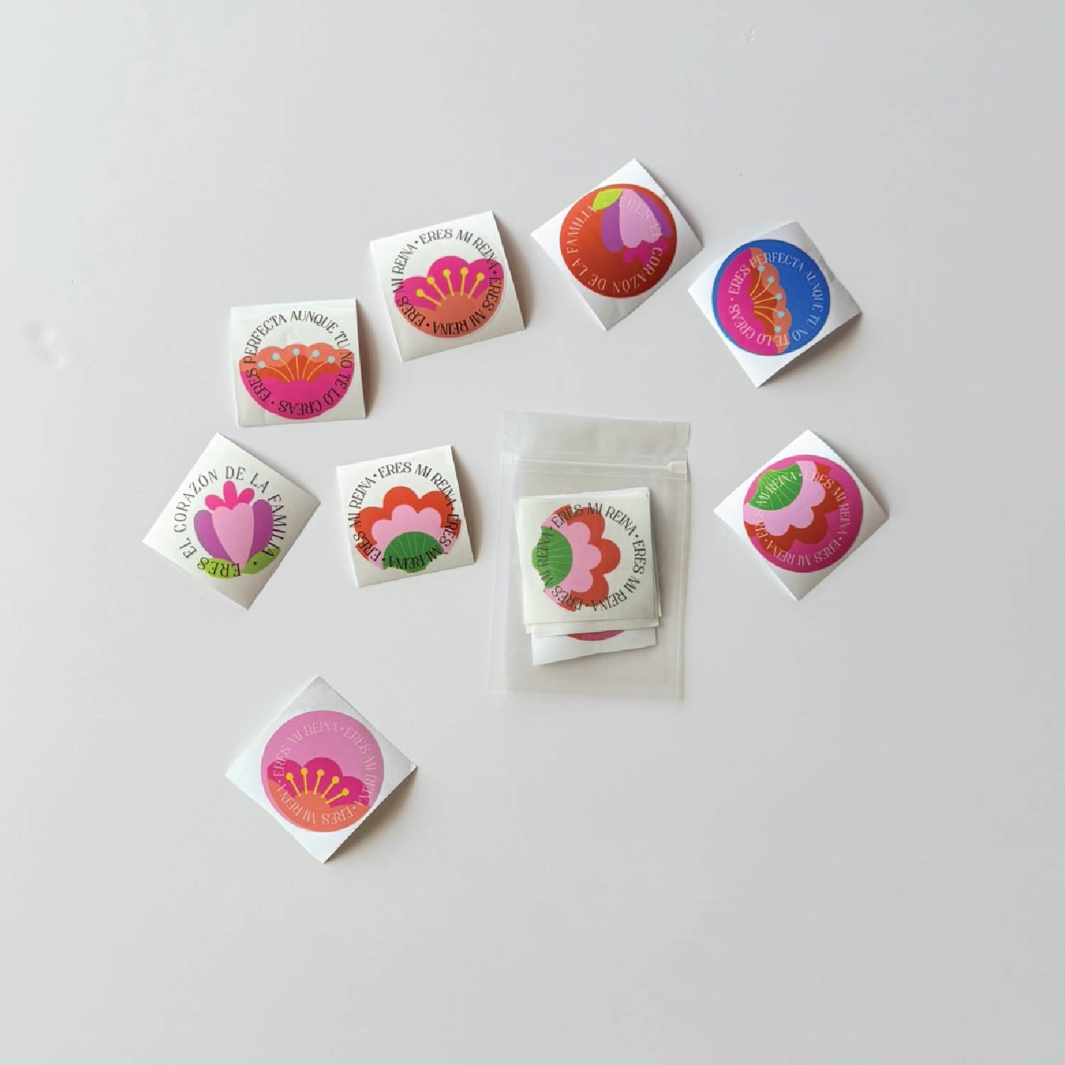 4 stickers transparentes y 4 full color